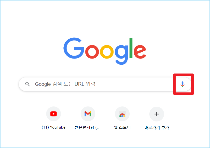 붉은색으로 박스친 부분을 누르면 목소리로 검색을 할 수 있습니다.