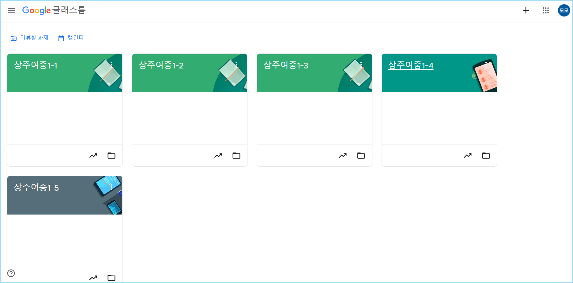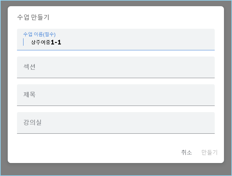 +를 눌러서 상주여중1-2를 만들어 주시면 됩니다. 동일한 방법으로 선생님들께서 만들고 싶으신 교실을 만드시면 됩니다.