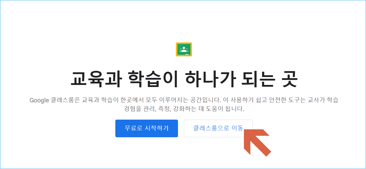 구글클래스룸 홈페이지에서 클래스룸으로 이동을 눌려줍니다.