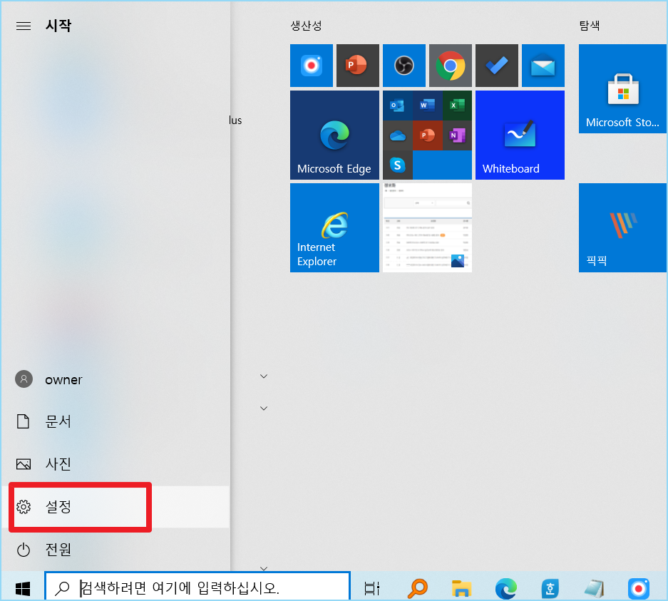 1. 윈도우창을 누르세요 그럼 설정이 있습니다.