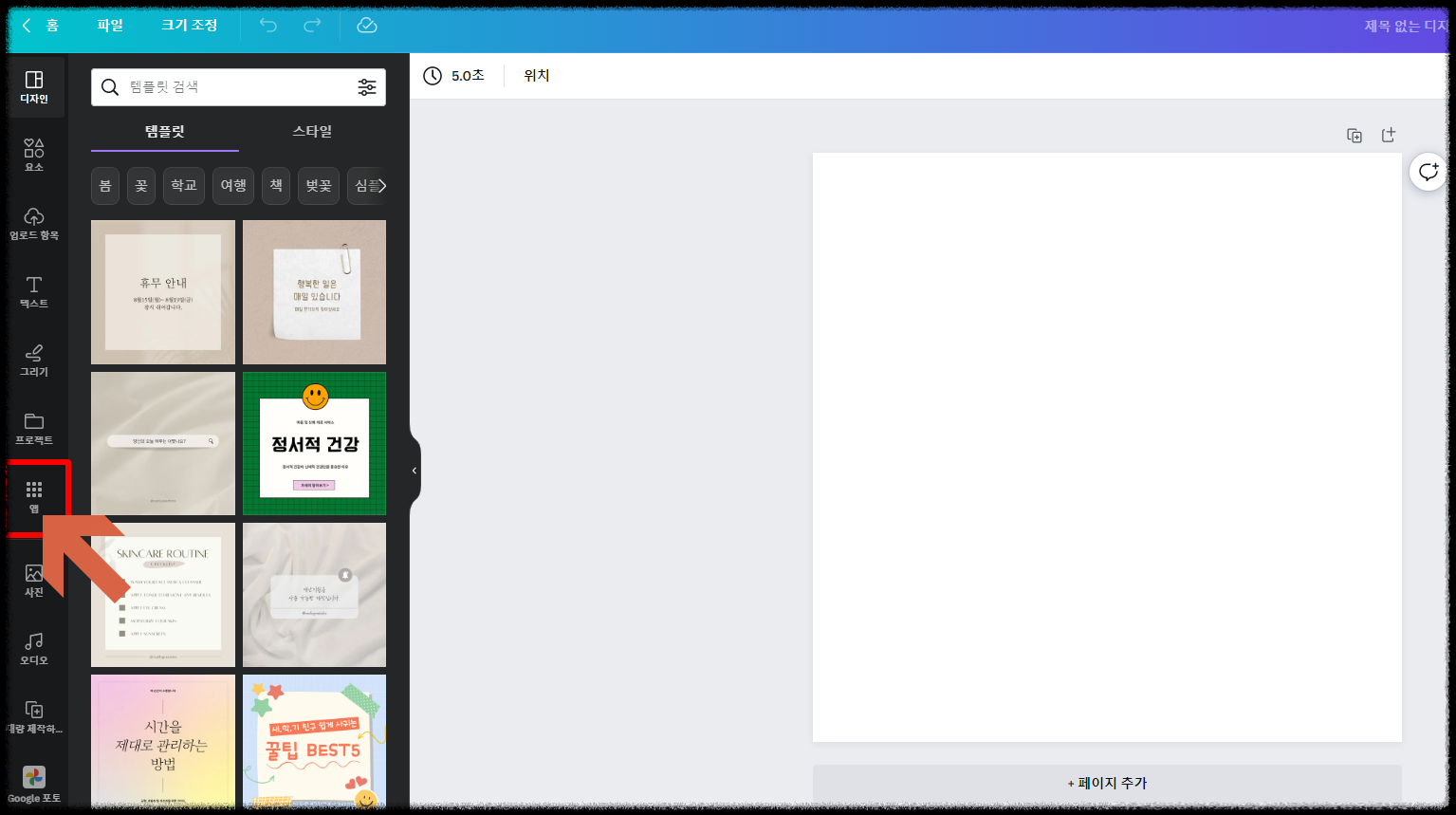 칸바에 들어가서 앱을 누릅니다.