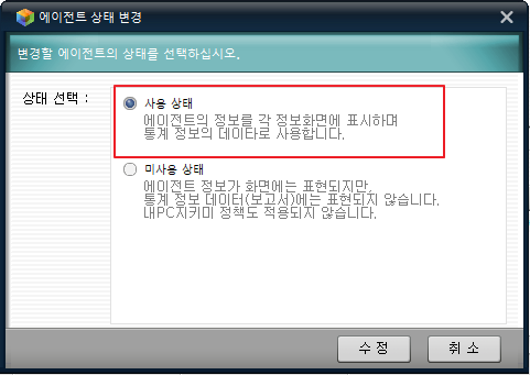 만일 설치를 새로해야 되는 경우에는 에이전트 삭제를 눌러주셔서 다운로드를 받으셔서, 실행을 해 줍니다. 그럼 컴퓨터에는 아무 변화가 없는 것 처럼 보입니다. 하지만 에이전트가 삭제되는 것이고, 5분 정도 그대로 두신 다음, 다시 컴퓨터를 껐다가 켜서, 에이전트 설치를 하면 됩니다.