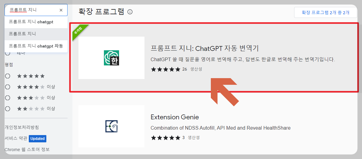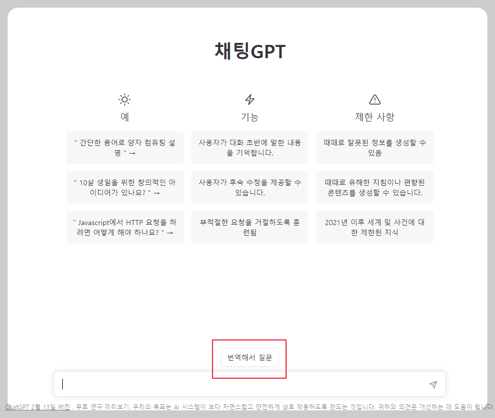 설치를 다 하고 ChatGPT에 들어가서 보면 번역해서 질문이라는 곳이 뜹니다. 거기를 누르면 번역하여 설명해 주고, 번역을 바로바로 할 수 있습니다.
