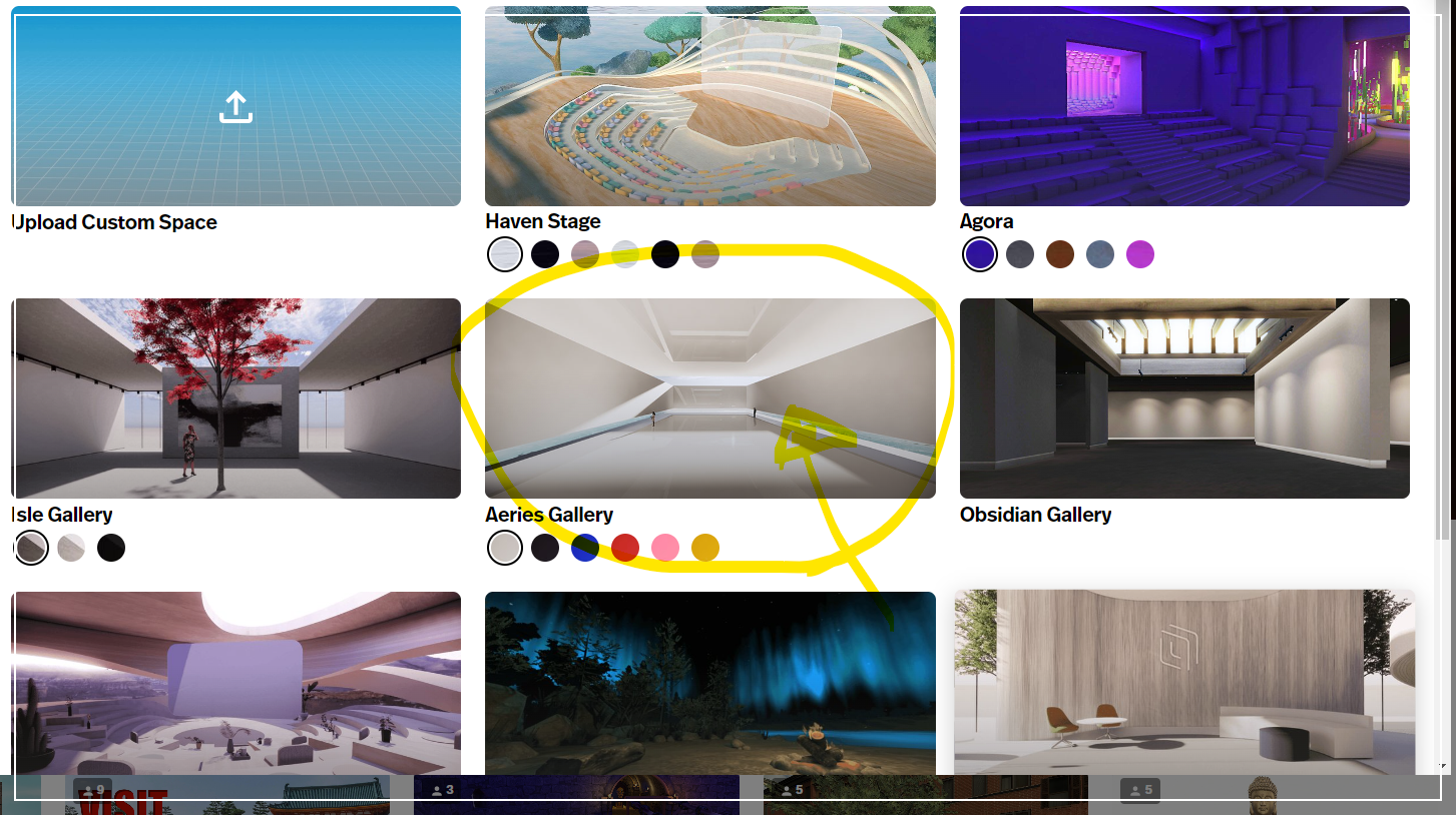 자신이 원하는 공간을 선택하면 됩니다. 저는 Aeries Gallery를 선택했어요. 색깔도 원하는 색으로 선택할 수 있네요