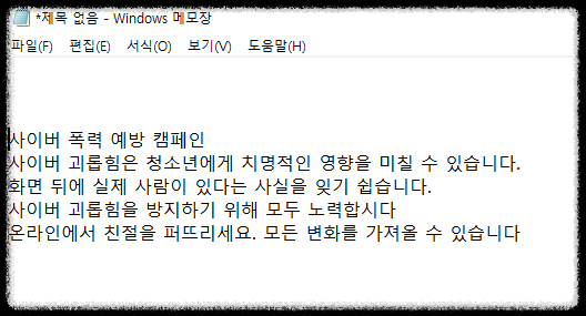자막이 들어 있는 영상을 쉽게 만들 수 있습니다. 학생들이랑 동영상 편집 기능을 이용하여 동영상을 만들어 보았어요. 학생들이 사용하기에 넘 좋은 영상편집 기능이 들어 있습니다. 정보 수업 1단원에 있는 사이버 폭력을 예방하는 방법을 동영상으로 만들어 보았습니다.